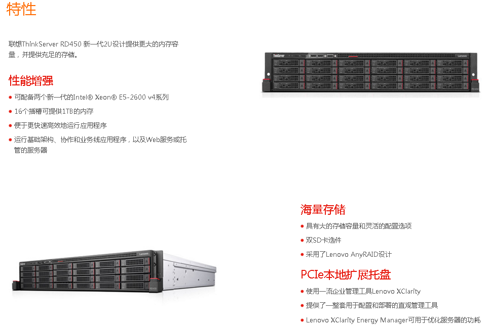 | 機箱形態(tài) | ThinkServer RD450 8*2.5系列 2U機架式 |